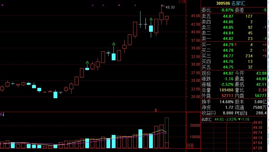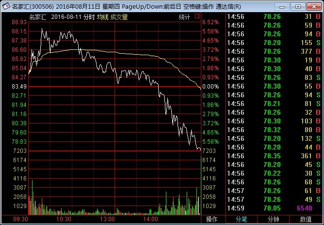 名家汇,早盘强势上行,似乎要继续上涨,涨停,结果中午开始弱化了,收盘大跌。