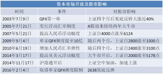 从图中可以发现,每一次金融市场的开放不仅能为股市引入新鲜血液,还使国内外资本流动更加自由开放,这些对股市的健康发展有着极大的意义,也给A股投资者带来系统性投资机会。