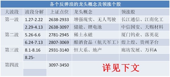 从各个波段的领涨板块不难理解为何在六月底,出现上行拐点,其主要原因是以地产为代表的权重板块开始启动,加速了指数的上行。两市若想实现反攻,必定要有权重更大的板块带领。