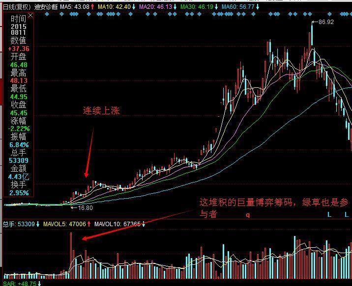 就在分散投资的过程中,与迪安诊断相遇了,当时也没有理由,或者是听某个高人谈的,也可能是因为近期涨幅好,追高进去的,反正非常随意的买卖股,情绪化严重。