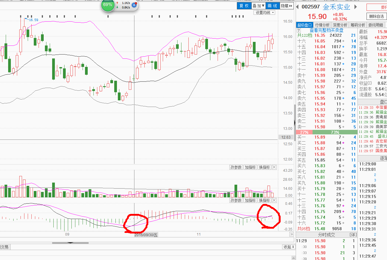 MACD日线出现双金叉买点。布林带上轨多次冲击过程之中,若能占上布林带上轨,强势可期。
