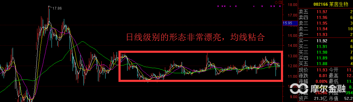 这种形态就是黑马形态,在一个距形里窄幅震荡,一个形态振幅越小越好,时间越长越好!