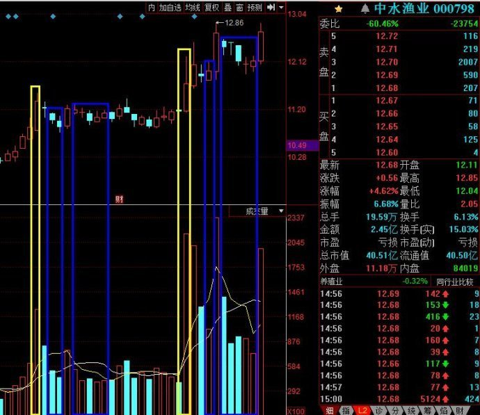 中水渔业,是第二根黄框拉升中盘中注意到的,当时仓位都在奇正藏药,所以就模拟仓买入,验证我的逻辑。