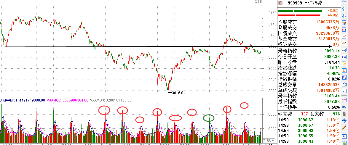 我们昨日也跟各位说过,在3100下方,我们发现操纵者不断买入的信号,而且做得非常隐蔽。因为散户买股票,希望一买完就马上涨。但这些资金的做法相反,采取的是越跌越买,上涨不追的策略。
