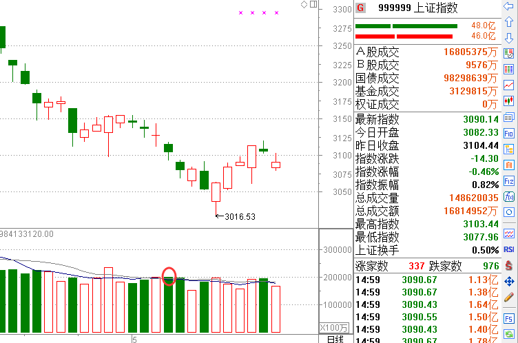 所以这个细节告诉你,当日后的开盘量没有超过这两个水平之前,指数就在这个窄幅空间内来回。