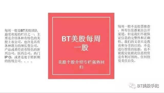 《BT美股每周一股》是美股个股介绍专栏,同时也是BT美股团队最受欢迎的栏目之一,现强势回归!