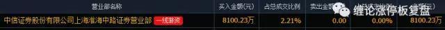 中信证券上海淮海中路是需要重点关注的营业部,可以说是当今市场实力最强的游资,和那些专门收割散户的游资不同,淮海中路孙哥非常有责任心,很大气,绝不在股价虚弱的时候出货,并且盘中适时引导股价。