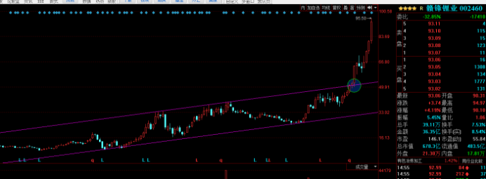 看看赣锋锂业的周线图,非常标准,具体买点和压力支撑转换不在赘述。