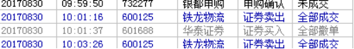 这个股再次出现突破通道上轨的买卖法,8.30日卖出最后一笔铁龙物流(期间有减仓和做T行为)