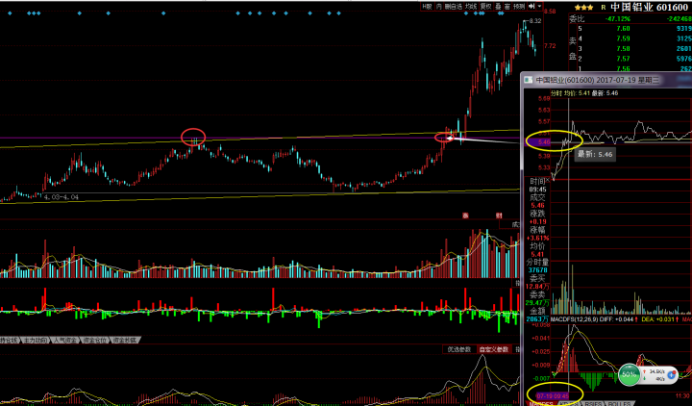 周四晚上看到这个股后,周五怎么找买点呢,这就要看近期的分时压力支撑转换了,下图是截止到周四收盘的K线