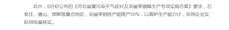这个环保的要求表示,10月后河北的钢铁限产50%,思考一下为什么说这个是潜在利好开滦呢?钢铁的高炉是有大气污染排放的,对其限产是为了控制污染的排放,这就说明一个问题,有另一个污染排放即将增大,冬季是钢铁需求的淡季,却是煤炭需求的旺季,原因就是冬季北方开始供暖了!现在的政策为了减少散煤的污染,提倡用电代煤,说到底煤的需求仍然会继续增大。