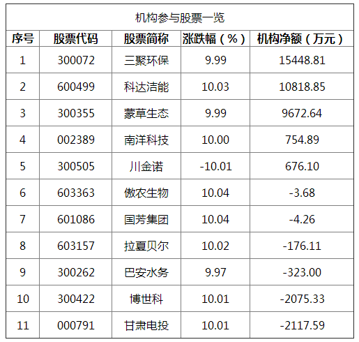 3、三聚环保强势涨停加速上涨 机构席位大买1.54亿