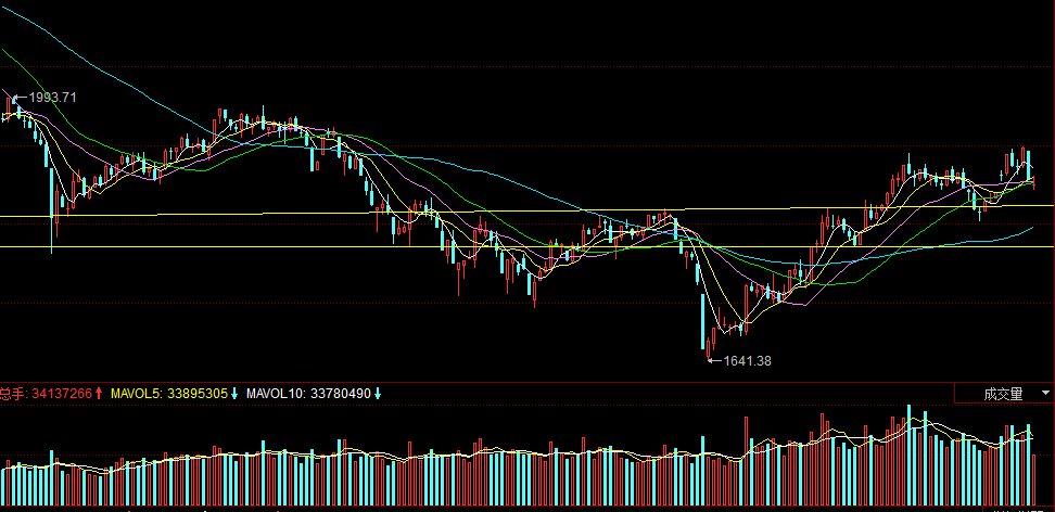 当前上证、创业板都出现缩量格局,后续走势一是要关注成交量,二是要关注市场热点。这里不放量和市场持续性热点向上突破很难。大概率是向下阴跌,那么在下跌过程关注成交量,当成交量缩小到一定地步,市场企稳时,可以再度重仓抄底。