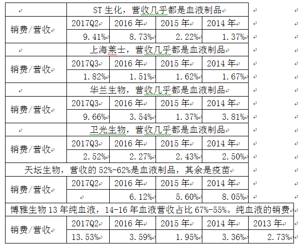 关键点之一:血液制品行业的销售费用