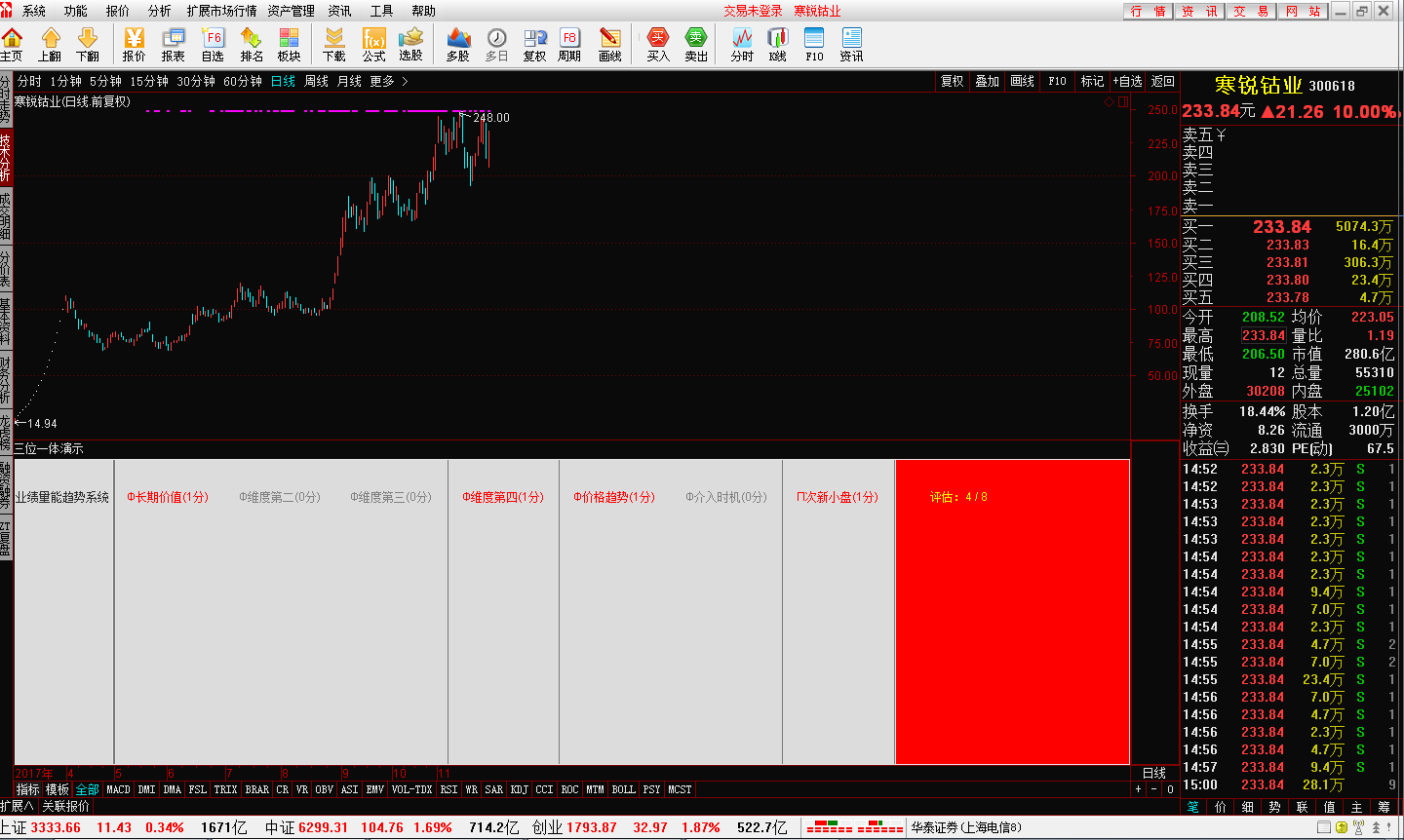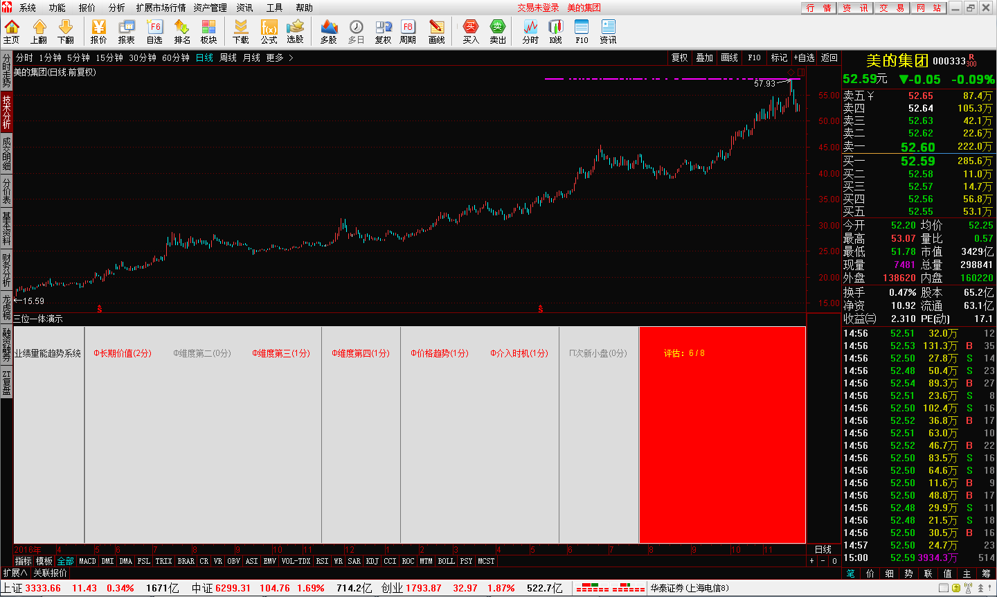 应用结果入上图,在股票技术分析界面,就多了一个评分系统。这个评分系统将多维度对股票进行评测。