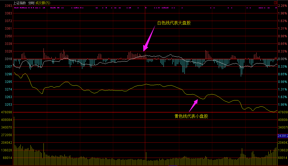 指数由于有上证50和沪深300的护盘,跌幅不大,股指严重失真,大小盘分化,个股今天全线杀跌,分时图上黄白线呈现极端的分化,白线远远在黄线之上。两市共71只股票跌停,盘面走得十分弱势。