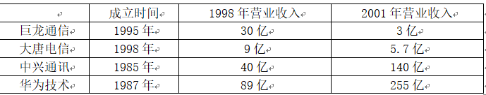 巨龙通信甚至没有培养出一支独立的研发团队,国家要求调走军方研发人员后,研发部门几近停滞,市场开拓也远落后于同行,又由于国企的复杂性质,无法厘清投资人和管理者的界限,经历多次重组都不幸失败,最终在2002年正式破产倒闭;大唐电信在1998年登陆A股,但是盈利不稳定已经多次被ST,长期游走在退市的边缘;中兴通讯经过多年发展已经成为市值近千亿的白马企业,受到市场追捧;华为技术更不必多说,已经发展成为世界闻名的大型跨国企业。