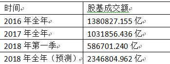根据券商中国公布的一季度股基成交额数据显示,2018年一季度成交活跃,以一季度数据推算2018年全年成交额将会达到去年的两倍。