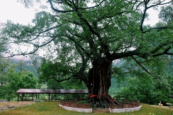 《鸟的天堂》中,巴金先生描绘了一棵生于岛上、树龄超过500年的古榕树,以及其所缔造的生态与活力;相较之下,这株“贵州省境内最大”、树冠高35.8米、根系占地46亩的榕树,少了几分活泼,多了几分肃穆。