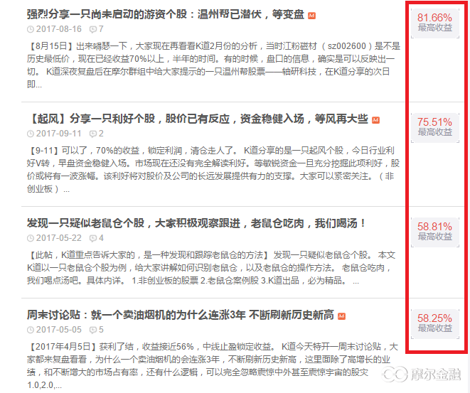6月初,K道继续用自己的实力打榜摩尔平台投资高手榜,以21.7%的收益率夺得摩尔平台三日收益高手榜第一名,周收益第二名的成绩。有图有真相。