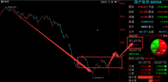 国产软件板块个股暂时属于底部超跌反弹的个股,从板块趋势角度分析,依旧属于短线级别的拉涨驱动,所以从整体预判仍旧有2-4天的时间操作时间,短线,快进快出为宜。