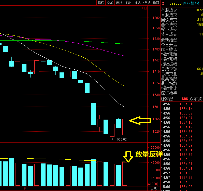 今日创业板指数出现了许久未见的放量反弹