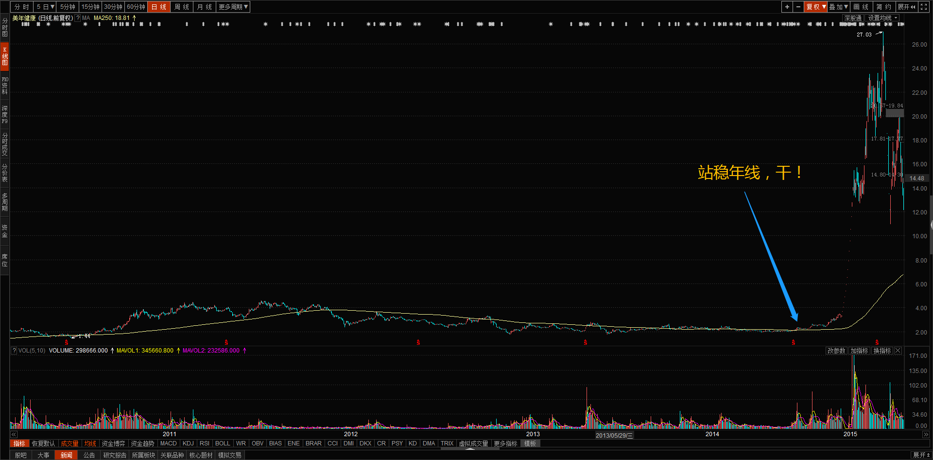 上边这个票主要是想讲讲年线的应用,年线压制票可以不碰,站稳年线就可以开始搞了。