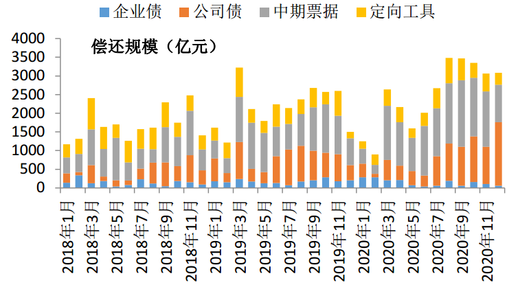 如果不考虑短期债,未来的信用债偿还相对高峰主要在2018年9月(2291 亿)、2018年11月(2480亿)、2019年3月(3226 亿)以及2020年下半年(7月后每月均有约3000亿)。