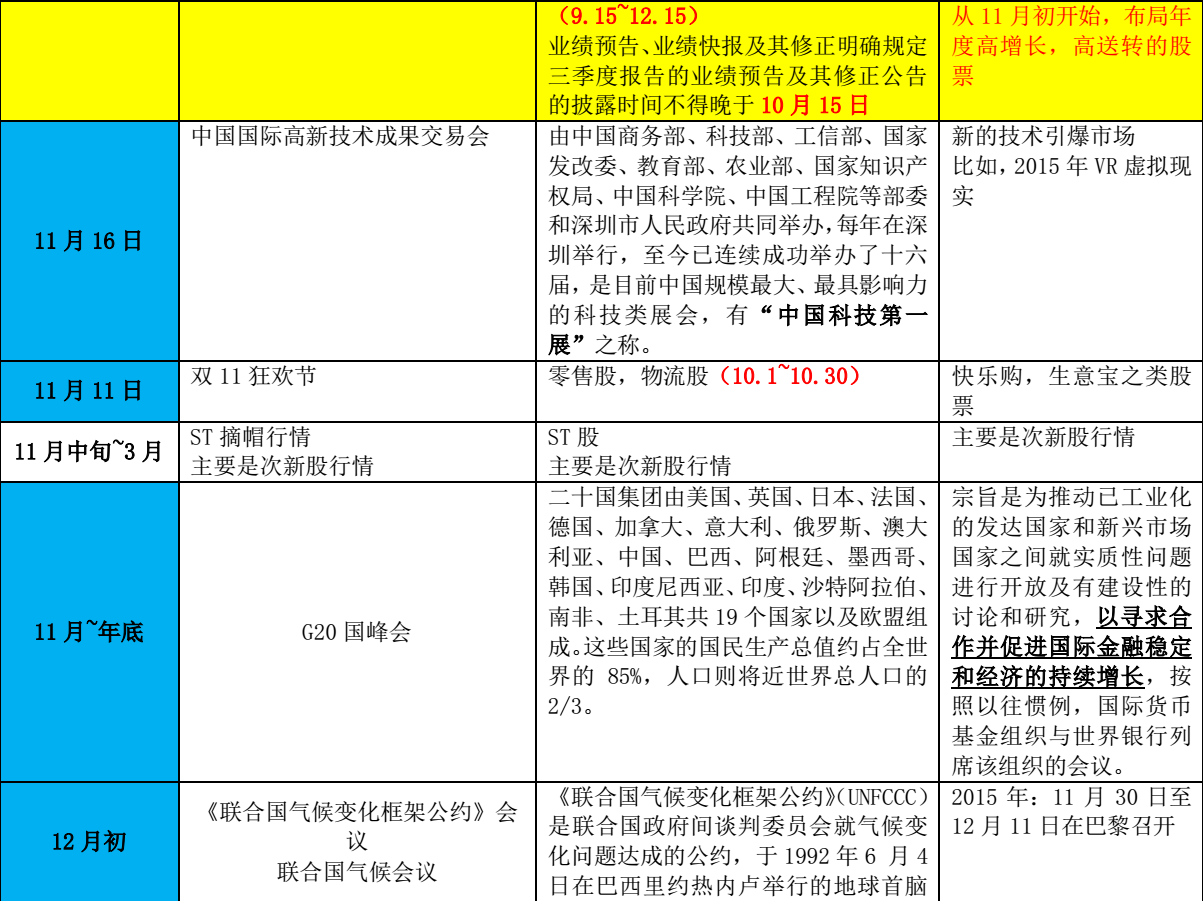 1、通过上面的分析,10月是一个风险相对较少的真空期,有助于提升市场风险偏好。