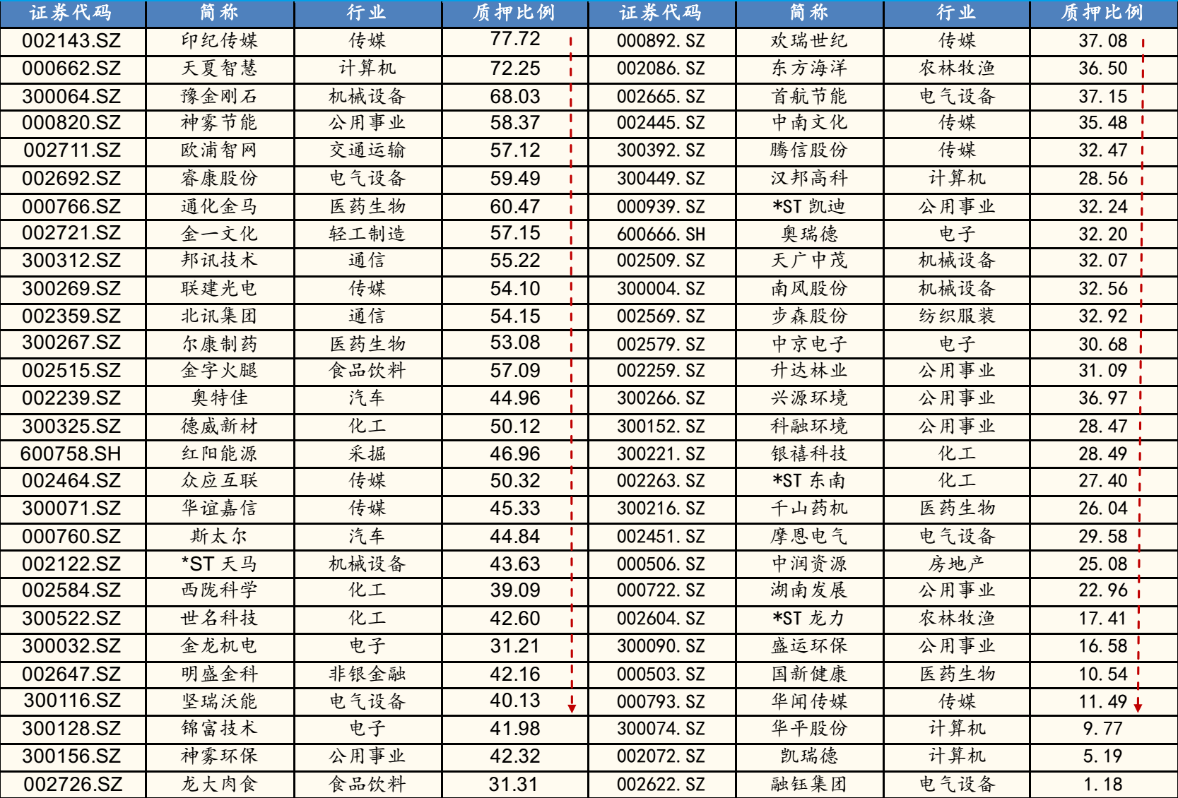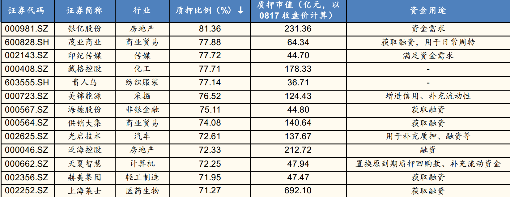 这里,再给大家附上截止到8月17日质押比例超过70%的13家公司名单: