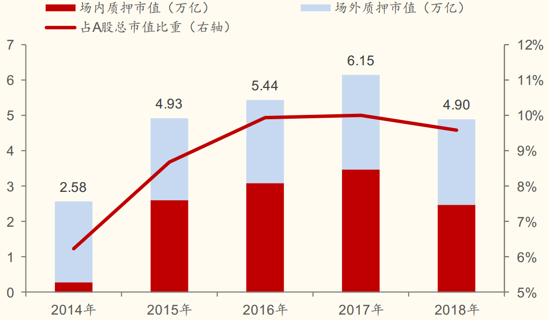 如果看看大股东的质押比率,我们会发现,管连平质押比率为77.62%,霍卫平质押比率为61.93%。这说明,即便是一些带有长线资金、价值投资标签的机构在里面,也无法阻挡股权质押爆仓的风险。借着这个机会,我今天再给大家聊聊股权质押的近况。