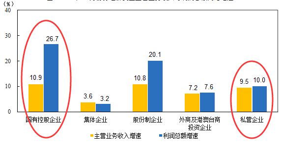 在利润总额增速是2位数以上的行业中,绝大部分都是国企控制或者垄断的领域。再想想之前人社部某位同志提出“民营企业要以职工为本,让职工共同参与企业管理”,国企都没让职工参与,更何况民企呢。