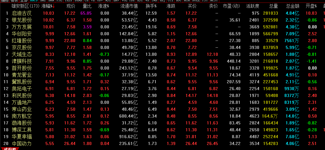 强势:京汉股份000615 万方发展000638 红墙股份002809 银龙股份603969 铁汉生态300197;
