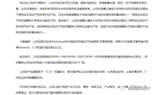 卫星通信:公司当前已经成为Inmarsat在中国区的终端生产制造商和方案提供商,两款GSPS船载卫星终端已取得Inmarsat、CCS和国内海洋渔业认证。