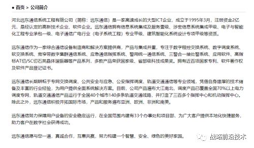 河北远东通信系统工程有限公司(简称:远东通信)是一家高速成长的大型ICT企业,成立于1995年3月,注册资金2亿元,是经认定的高新技术企业、软件企业。远东通信拥有信息系统集成及服务壹级、涉密信息系统集成甲级、电子与智能化工程专业承包一级、电子通信广电行业(电子系统工程)专业甲级、建筑智能化系统设计专项甲级等资质。