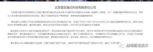 北京雷生强式科技有限责任公司是从事光电功能材料及其光电子元器件和专用晶体生长装备(单晶炉)的研发、生产、销售和服务的高新技术企业,具有五十多年激光晶体的研发历史和经验,建立了完备的科研生产管理制度、保密制度和质量管理体系。