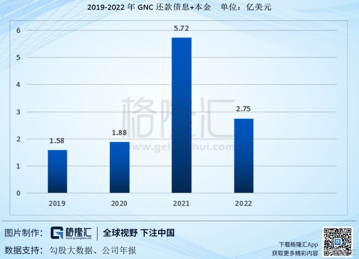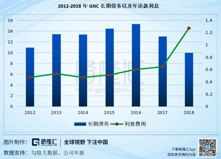 上图为GNC在年报中披露的未来还债明细,其中GNC公司可以与银行协商,并非完全按照上图中的执行,但可以预见的是每年债息不低于1.5亿美元,而2017年以前都是维持在0.5亿左右。