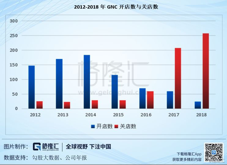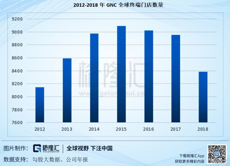 线上的冲击对同店营收持续降低令许多店铺入不敷出,被迫关门。2015年GNC的终端数量达到巅峰,而后逐年下降。