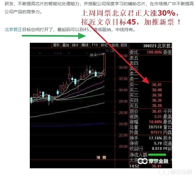 [摘要] 一周一票系列 :北京君正大涨20%,下一个二层空间票来了 ! 我们的投资方法,都是底部坚决持有,高位全部止盈出局,下周可以布局新的低位票了。 我们都知道底部启动行情,经常会出现低估就会迎来资本的关注,提前做功课,埋伏低估公司,抓住机会享受资本的抬轿。