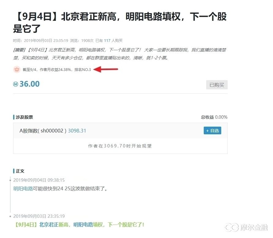 [摘要] 【9月9日】领益制造北京君正明阳曙光都反弹新高了,下一个看好分析 大家一定要长期跟踪我,我们直播的清清楚楚,买和卖的时候,天天有多少仓位,都在群里直播贴出来的,清晰,就1-2个票。