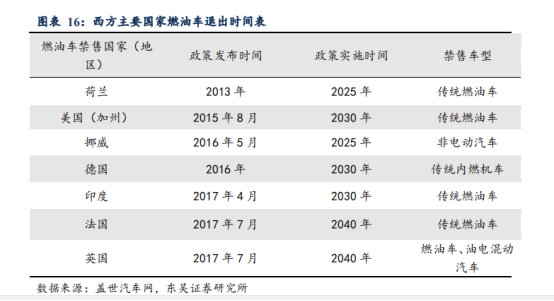 一文中我们有分析过,新能源车是一个长期的新兴产业,长期的朝阳行业,长期的看不到天花板的行业。汽车智能化和电动化未来大趋势不可逆转。目前各国都在积极发展新能源汽车战略,最迟到 2040 年,西方各主要国家的燃油车将退出市场,取而代之的是新能源车型。
