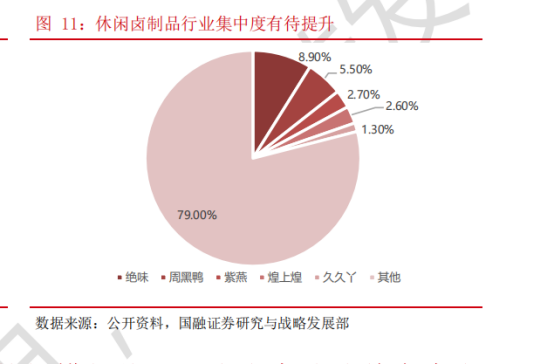 预计2020 年整体市场规模将达到 1235 亿,行业景气度较高。从行业竞争格局来看,形成了绝味和周黑鸭两超绝对领先的局面,而绝味的加盟模式目前比周黑鸭的直营模式更贴合市场。从集中度来看,CR5 仅 21%,未来存在提升空间。