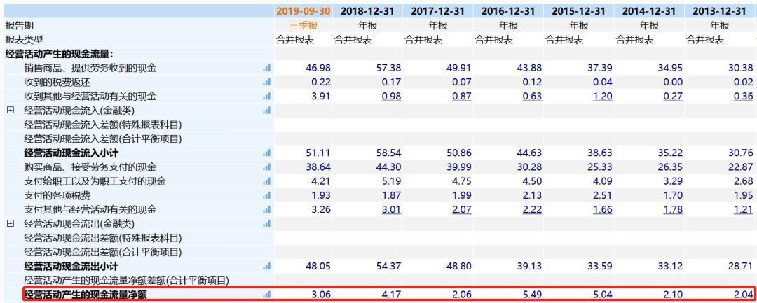 公司的上游是大宗商品,下游主要是房地产等,经营现金流不会太好,也不会太差。数据显示,2018年经营现金流4.17亿元,2019年前三季度约3.06亿元,算不错的。