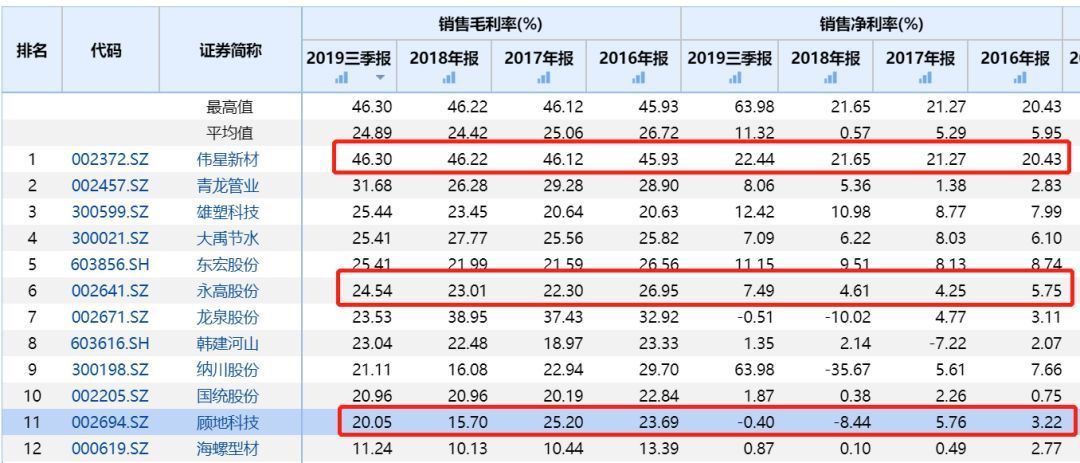 具体来看,伟星新材的毛利率为46%左右,同行业的公司多在20%-25%之间,伟星新材的净利率在20-22%之间,同行业的其他公司多在5%左右,差距十分明显。