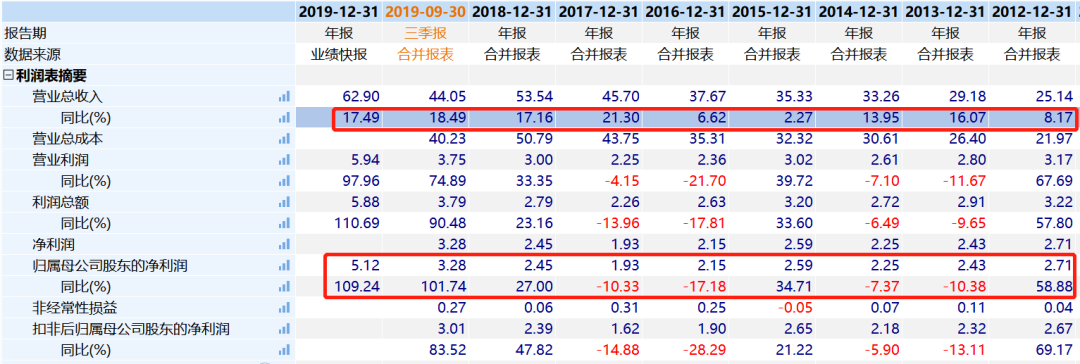 但是2019年以来,公司利润加速非常明显,业绩快报显示,归母净利润高达5.12亿元,同比增长109.24%。