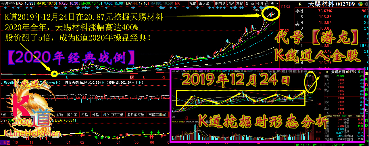 [摘要] ⭕⭕⭕【内容摘要】本文首先分析了最后一个交易日市场盘面走势,同时分析了龙虎榜个股,提示了市场的热点及游资操盘的个股。本文是K线道人牛年新春第一篇技术分析文章,文章首先总结了现在市场的特色和2021年我们对应的策略,同时本文技术性拆解了一只值得牛年长线持有的一只龙头个股,该股基本面良好,股价低估。技术层面上该股横盘已久,构筑了长达5个月的窄幅震荡箱体,目前技术上刚刚异动,量能放大,均线开始向上拐头,很有可能是一波新行情的开始,值得我们重点关注。强烈建议大家包月阅读K道文章,包月更划算,可进K道VIP包时段实盘交流群交流! ⭕⭕⭕【2020逮到的牛】K道在2020年挖掘了很多只大牛个股,如:天赐材料,振德医疗,上海新阳,千禾味业,长安汽车,比亚迪,天山生物,金徽酒,赣锋锂业,新余国科,深物业,山东赫达,凯撒文化,格林美等。同时K道也穿插着给大家分享了自己的实盘心得,以及盘口拆解的技术方法和战法策略! ⭕⭕⭕【文章声明】本文仅为作者分享个股探讨市场运作规律和策略、研究K线形态技术分析之用,分享探讨个人看盘技巧,不做任何投资建议,也不作股票买卖依据,任何依此进行的个股买卖操作与文章无关。