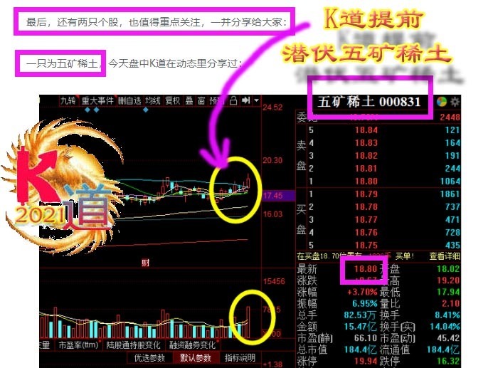 [摘要] ⭕⭕⭕【精】【宝典】【通往财务自由的必经之路K道秘籍系列文章目录索引】【最新版:2021年10月版】 ⭕⭕⭕【最近实盘分享】2021年至今,K道挖掘了数不胜数的大牛个股,如西藏矿业、西藏珠峰、西藏城投,五矿稀土,科士达,合盛硅业、富满电子、石大胜华、中国化学、冀中能源、比亚迪等等。又如9月K道挖掘的太阳能,在大盘连续大跌的情况下太阳能再次成为市场灵魂,一路高歌,两周收益35个点。这些都是市场上的大牛长线金股,K道在其刚起步刚刚漏出端倪的时候便挖掘出来,并且迅速发文进行技术盘口的拆解,有理有据!有文有图,更有实盘为证!而这些金子个股都是k道结合盘口信心进行技术拆解和分析挖掘出来的。k道传授大家的是一种老盘逮股抓主力的方法,股市结识有缘人。授人以鱼不如授人以渔,如果不想错过下一只k道挖掘的大牛个股,就快快包月阅读k道文章和动态吧! ⭕⭕⭕【文章声明】本文仅为作者分享个股探讨市场运作规律和策略、研究K线形态技术分析之用,分享探讨个人看盘技巧,不做任何投资建议,也不作股票买卖依据。