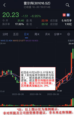 上市公司中,雷尔伟表示,公司参与了中老铁路和雅万高铁的轨道交通车辆的车体结构件、转向架减震缓冲及牵引制动类零部件的研发、生产制造及销售。雷尔伟持续上涨多日后回落,截至10月28日收盘,区间最高涨幅达26.39%。