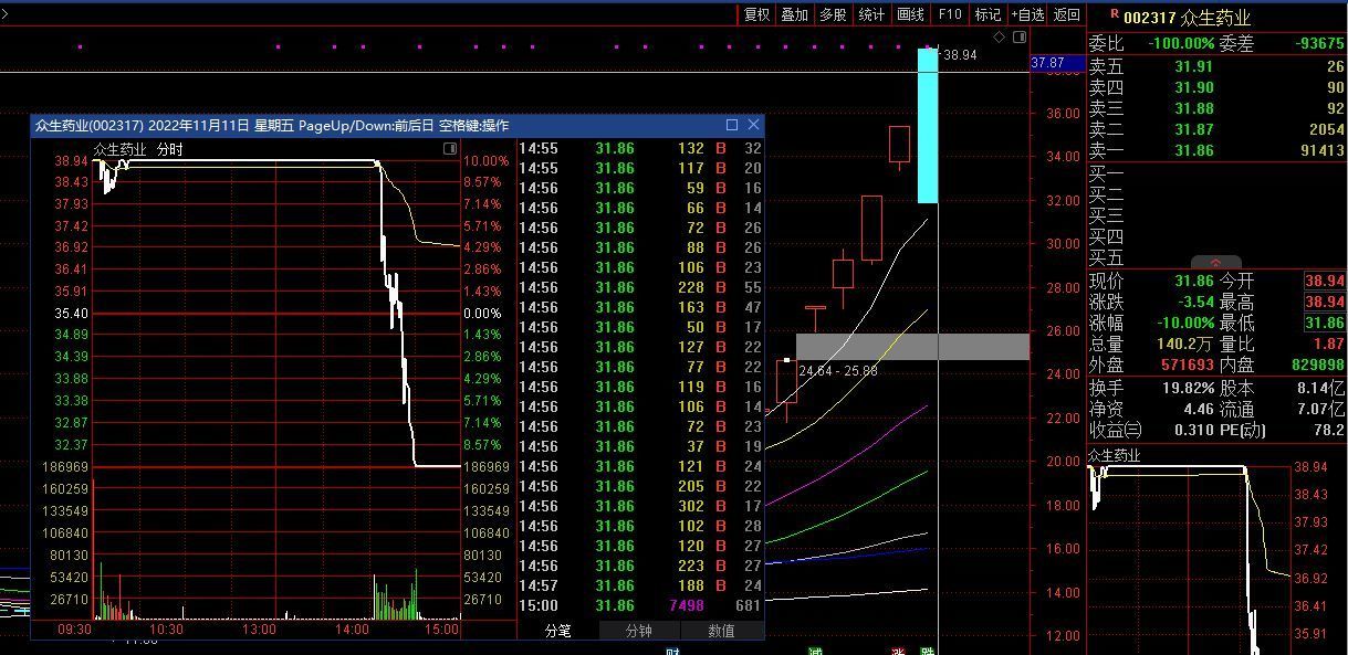 周五是中药板块的高潮毕业照,002474容基软件也是跟着众生药业涨停打开到跌停,周五下午中药板块见顶带动了很多股见顶或是杀跌和跌停,比如603929亚翔集成,这个股是11月7号潜伏的,连续3个涨停后也是低开被带动跌停,002858力盛体育,涨幅不高也是涨停到跌停,002864,600318等,短线看它们是见顶部了,因为成交量太大,所以没人接盘的情况下估计后面是腰斩,历史上很多妖股都是见顶部后都是腰斩起步,所以谨慎