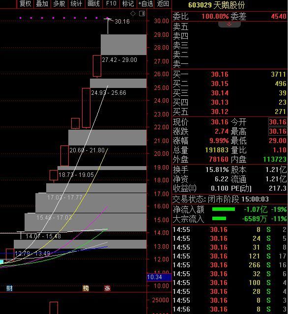 供销社热点龙头天鹅股份连续10个涨停后停牌,对比今年1月份的600793宜宾纸业连续10个停牌见顶腰斩完全不同,根据历史不会重演的角度看,下周一天鹅股份复盘后最好能跌-20%调整下,竞业达复牌后继续涨停那是因为大盘转好底部大涨,天鹅虽然属于高位,但是主力还没来得及出货,所以这个股还有反复和第二波,只是停牌后的复牌需要重新进入新的10天监管期,所以它会像竞业达一样最好区间中间震荡来回洗,如果不洗盘或是洗盘2天就涨停启动那么连续22%又要面临新的停牌两周,所以看主力怎么玩了,第一波错过的那么可以关注第二波机会
